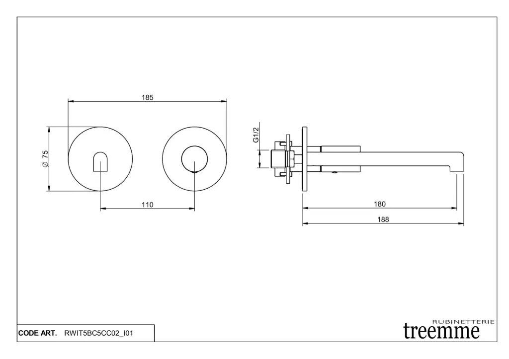 Treemme T30 Смеситель для раковины встраиваемый, внешняя часть, излив 18 см, цвет: chrome RWIT5BC5CC02