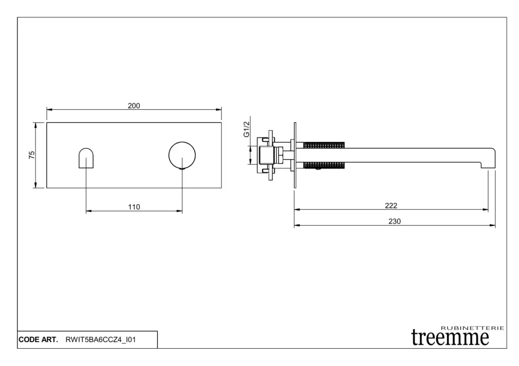 Treemme T30 Смеситель для раковины встраиваемый, внешняя часть, излив 22,5 см, цвет: chrome RWIT5BC6CCZ4