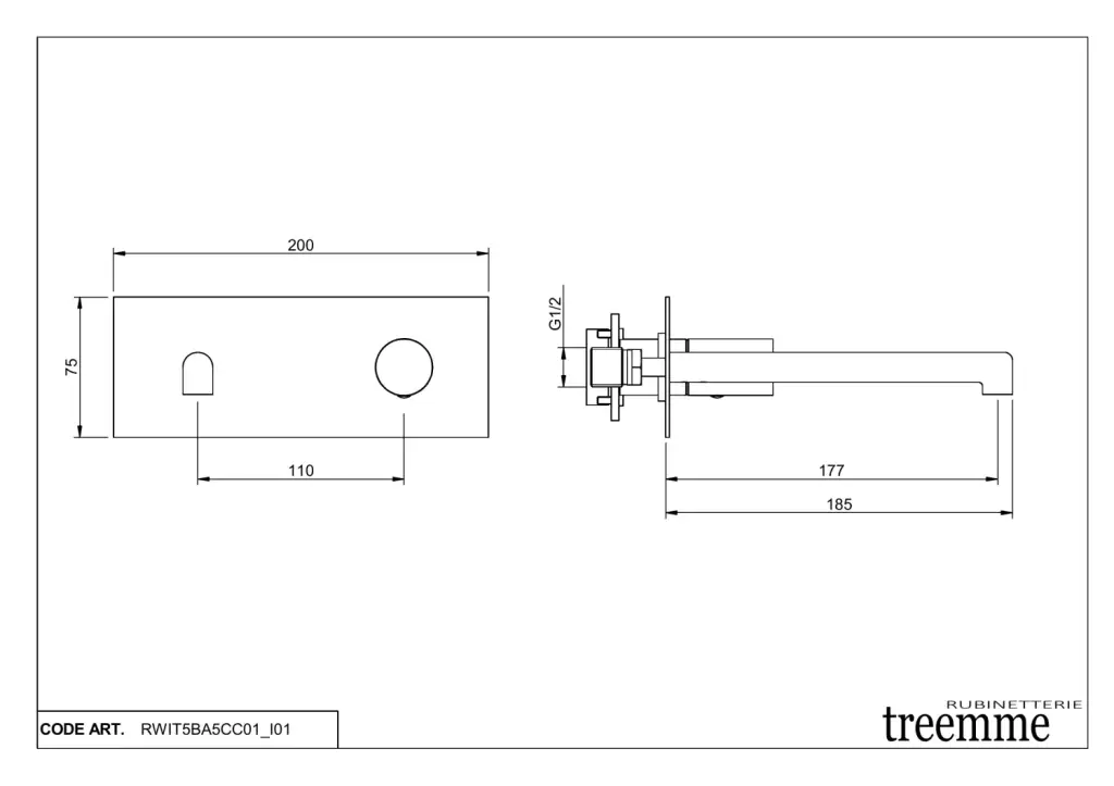 Treemme T30 Смеситель для раковины встраиваемый, внешняя часть, излив 17,7 см, цвет: chrome RWIT5BA5CC01
