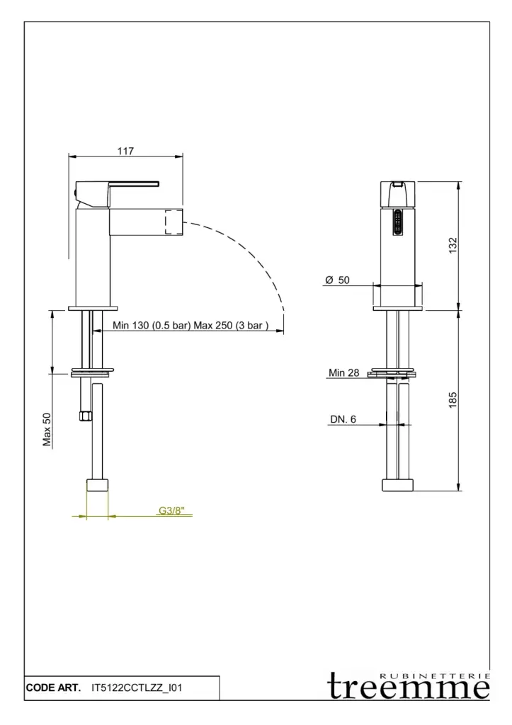 Treemme Time-Time out Смеситель для раковины, без д/к, длина излива 12,7 см, цвет: chrome IT5111CCTLZZ
