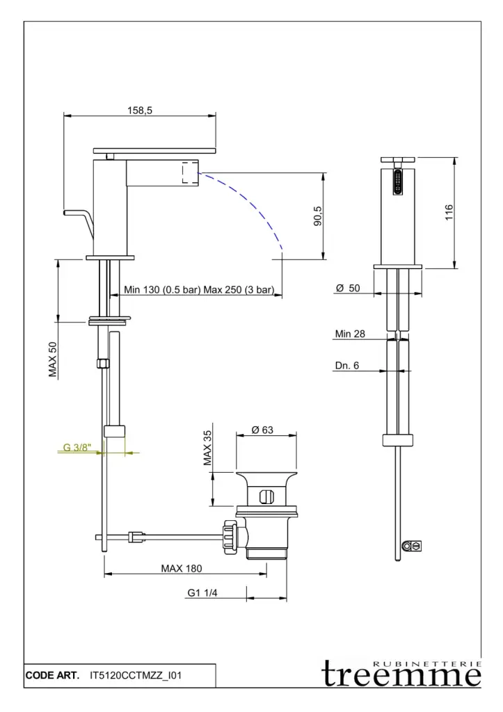 Treemme Time-Time out Смеситель для раковины, без д/к, длина излива 12,7 см, цвет: chrome IT5111CCTLZZ