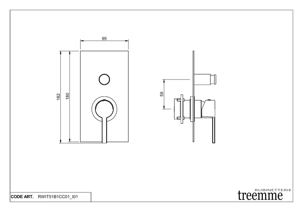 Treemme Time-Time out Смеситель для душа встраиваемый, 1 потребитель, внешняя часть, цвет: chrome RWIT51B1CC01