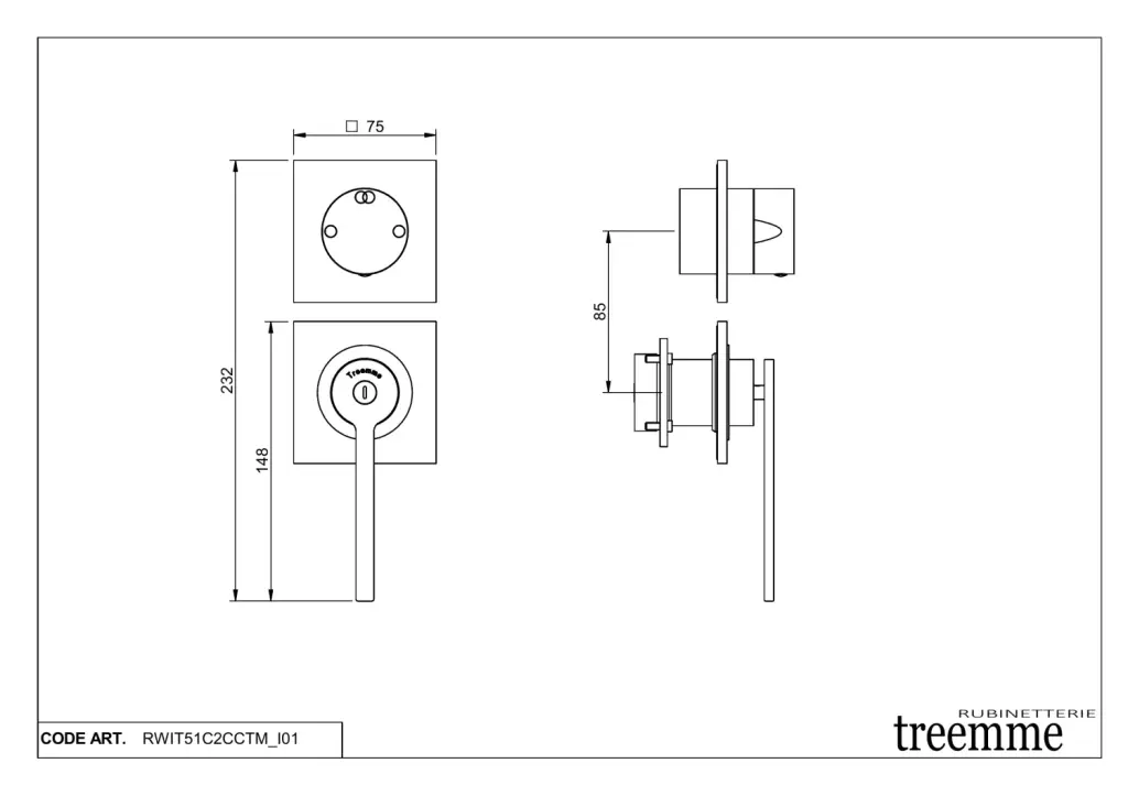 Treemme Time-Time out Смеситель для душа встраиваемый, 2 потребителя, внешняя часть, цвет: chrome RWIT51C2CCTM
