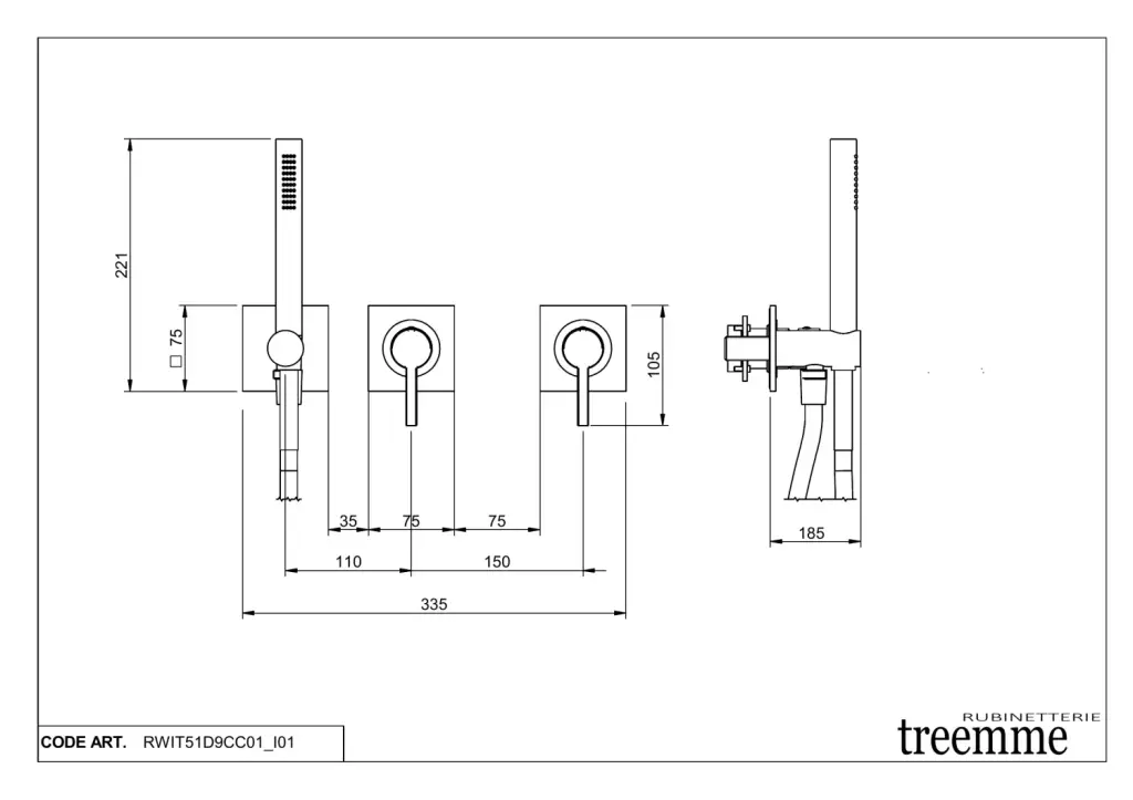 Treemme Time-Time out Смеситель для душа встраиваемый, 2 потребителя, внешняя часть, цвет: chrome RWIT51D9CC01