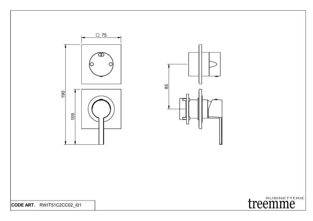 Treemme Time-Time out Смеситель для душа встраиваемый, 2 потребителя, внешняя часть, цвет: chrome RWIT51C2CC02