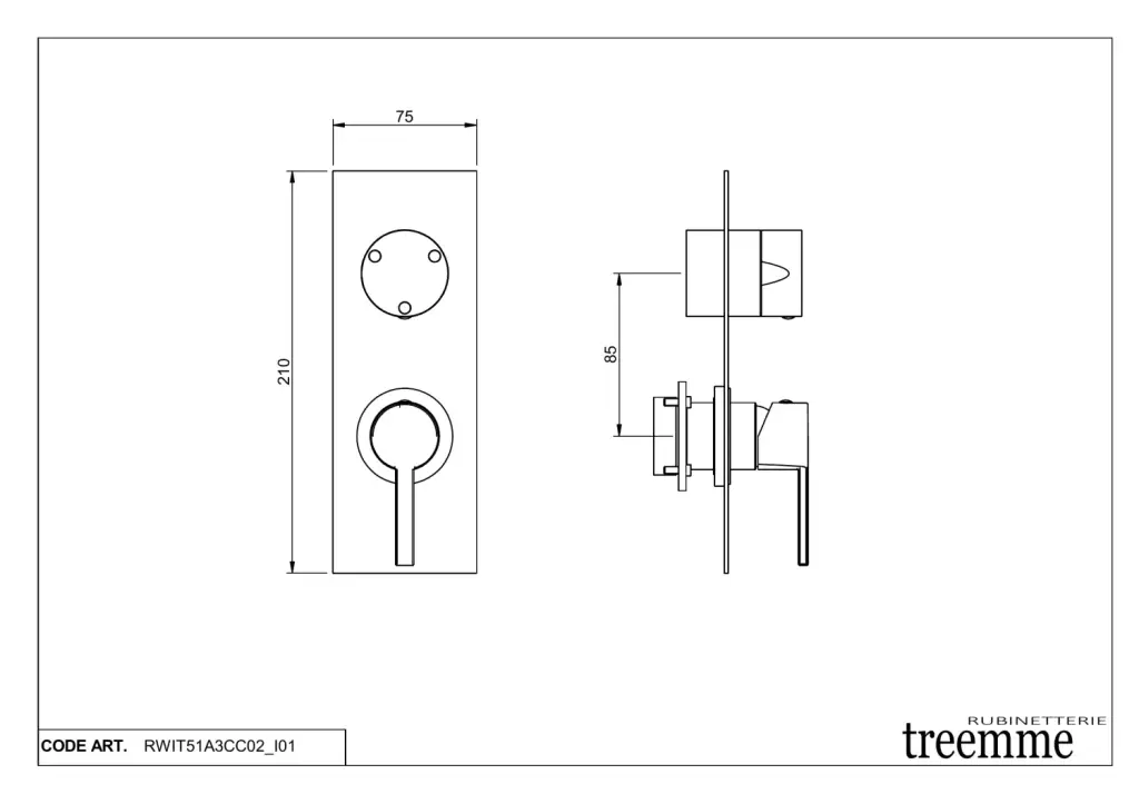 Treemme Time-Time out Смеситель для душа встраиваемый, 3 потребителя, внешняя часть, цвет: chrome RWIT51A3CC02