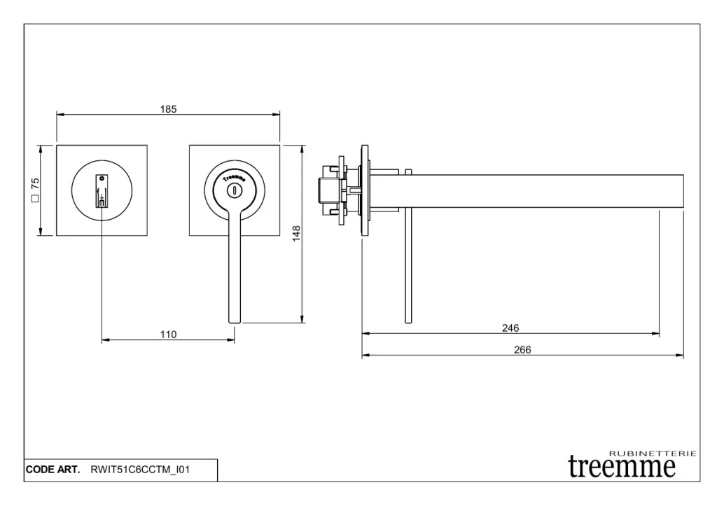 Treemme Time-Time out Смеситель для раковины встраиваемый, внешняя часть, излив 24,6см, цвет: chrome RWIT51C6CCTM
