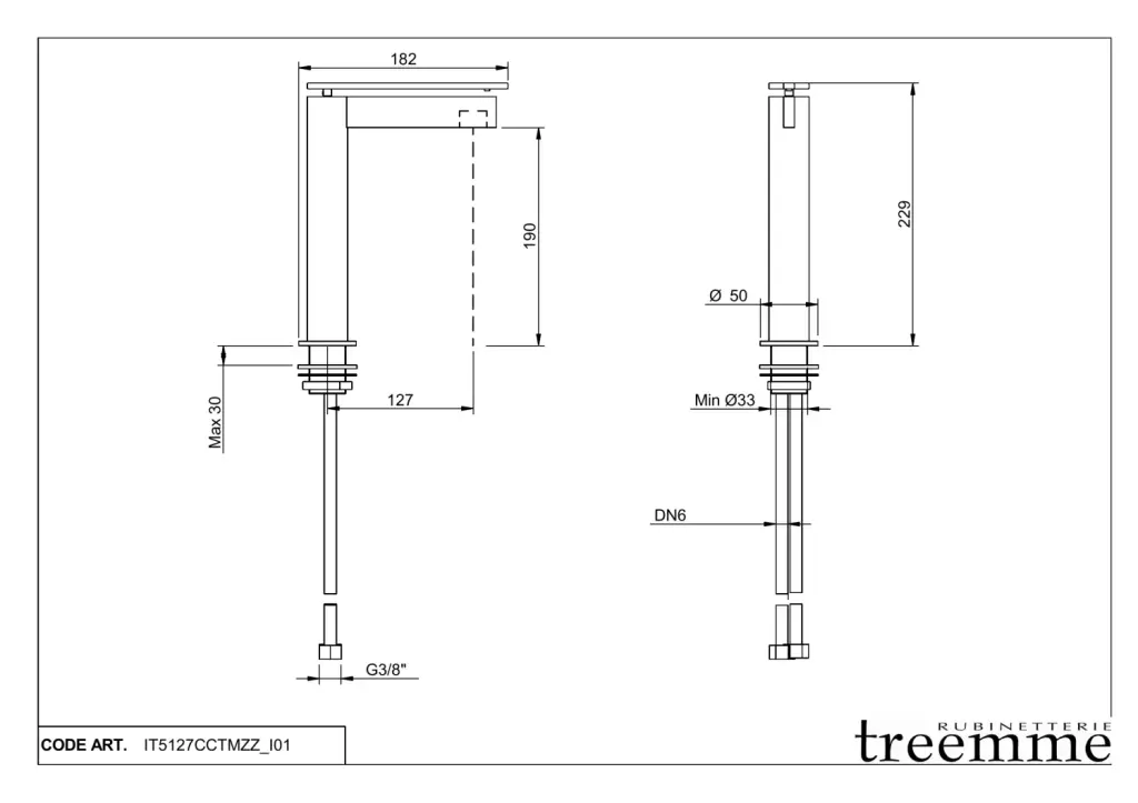Treemme Time-Time out Смеситель для раковины высокий, без д/к, высота излива 19 см, цвет: chrome IT5127CCTMZZ