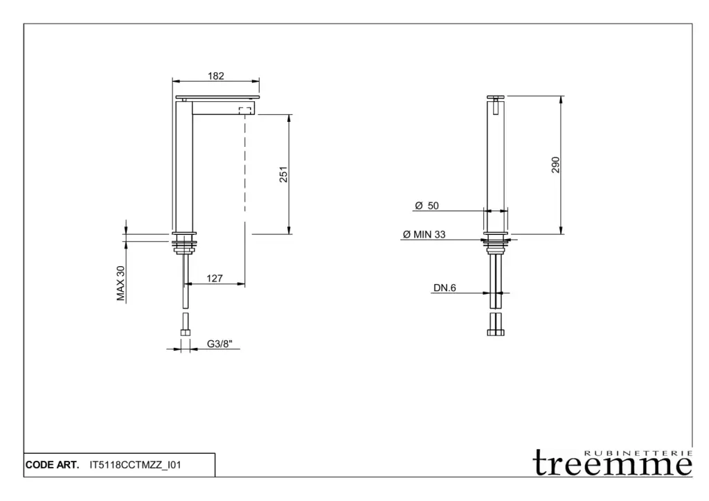 Treemme Time-Time out Смеситель для раковины высокий, без д/к, высота излива 25,1 см, цвет: chrome IT5118CCTMZZ