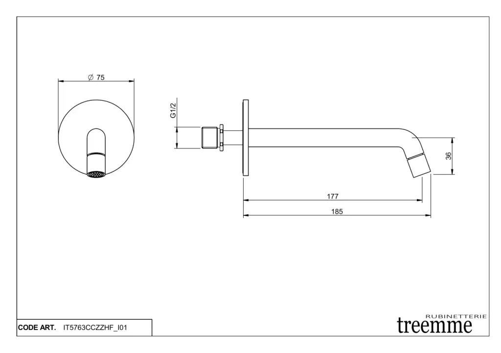 Treemme Up+ Излив настенный для ванны 18,5 см, цвет: chrome IT5763CCZZHF