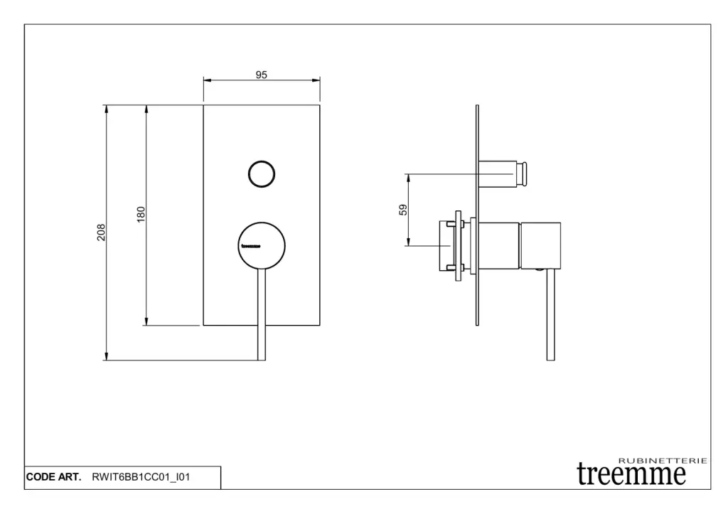 Treemme Up+ Смеситель для душа встраиваемый, 1 потребитель, внешняя часть, цвет: chrome RWIT6BB1CC01