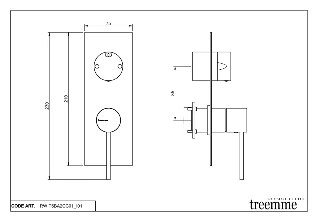 Treemme Up+ Смеситель для душа встраиваемый, 2 потребителя, внешняя часть, цвет: chrome RWIT6BA2CC01