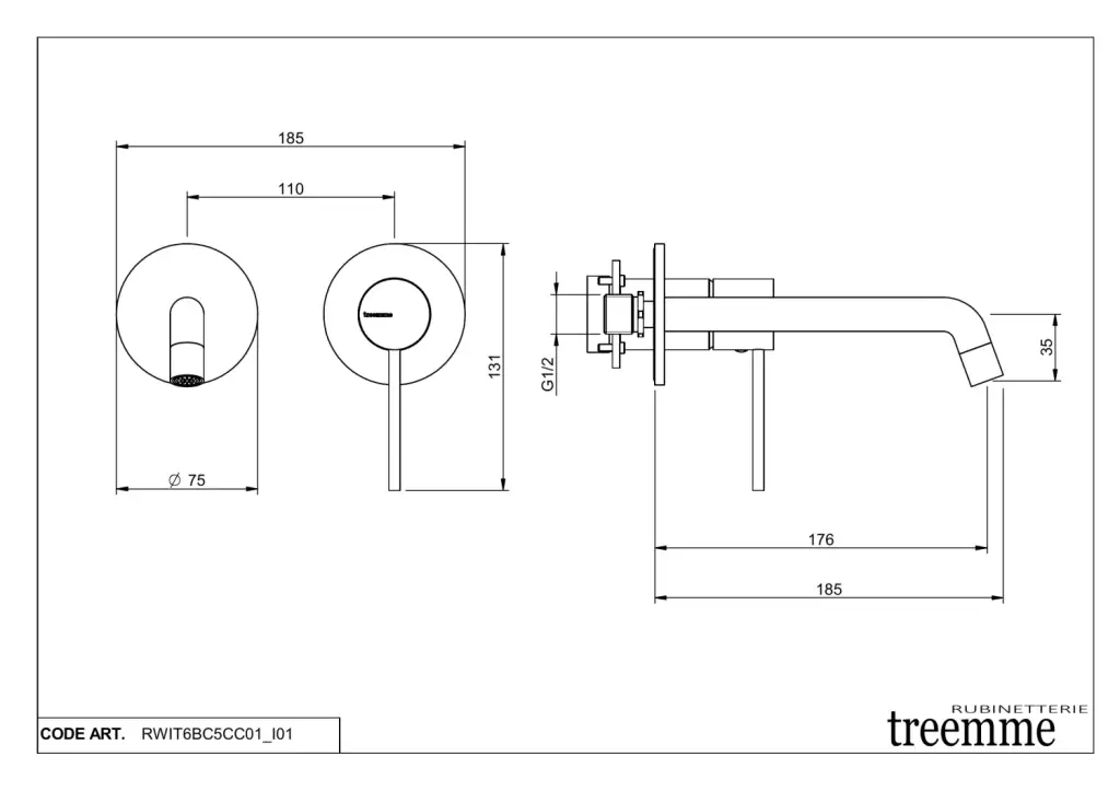 Treemme Up+ Смеситель для раковины встраиваемый, внешняя часть, излив 17,6 см, цвет: chrome RWIT6BC5CC01