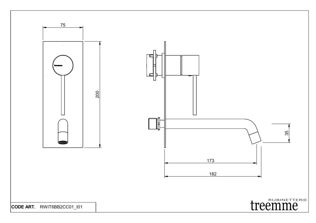 Treemme Up+ Смеситель для раковины встраиваемый, внешняя часть, излив 17,3 см, цвет: chrome RWIT6BB2CC01