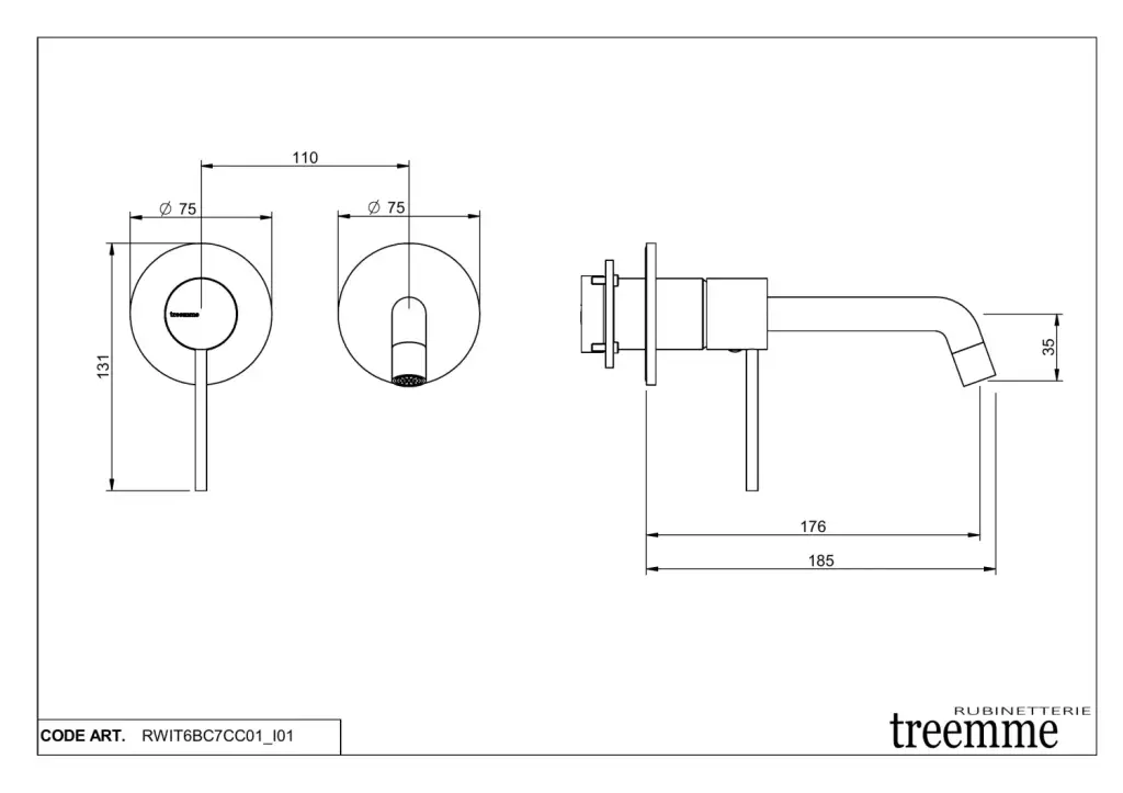 Treemme Up+ Смеситель для раковины встраиваемый, внешняя часть, излив 17,6 см, цвет: chrome RWIT6BC7CC01