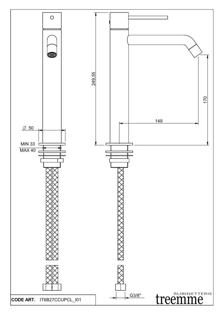 Treemme Up+ Смеситель для раковины высокий, без д/к, высота излива 17 см, цвет: chrome IT6B27CCUPCL
