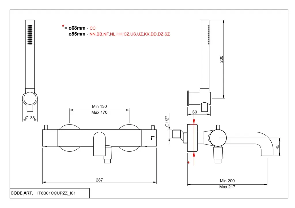 Treemme Up+ Смеситель для ванны термостатический накладной с ручным душем, 1 вид струи, цвет: chrome IT6B01CCUPZZ