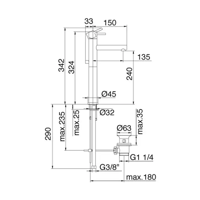 Treemme Vela Смеситель для раковины, высокий, цвет: хром 5812CCVL