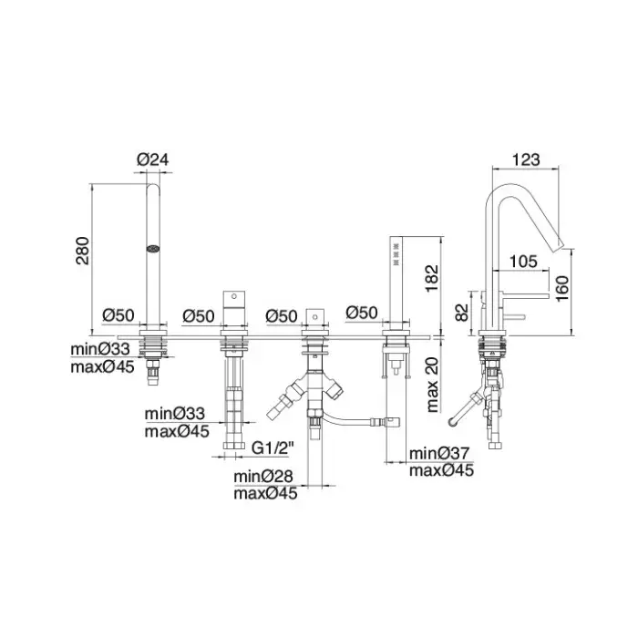 Treemme Vela Смеситель на борт ванны, на 4 отверстия, ручка VL, цвет: хром 5868CCVL