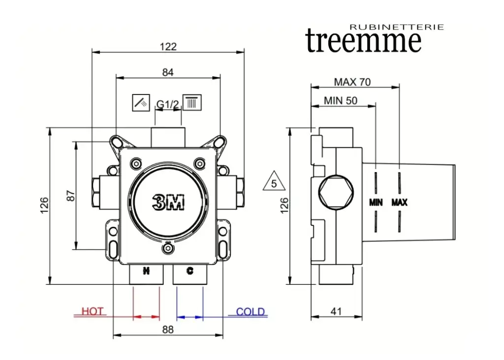 Treemme Внутренняя часть встраиваемого смесителя для раковины/душа на 1 отверстие RWIT51A8ZZ03