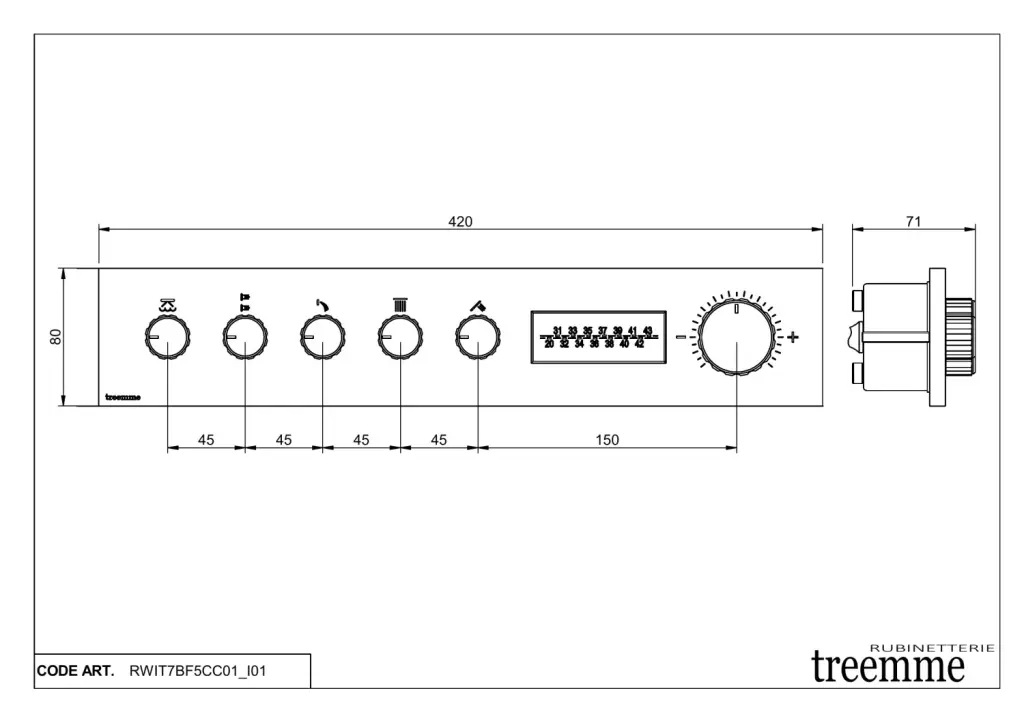 Treemme W-70s Смеситель для душа термостатический встр., 5 потребителей, внешняя часть, цвет: chrome RWIT7BF5CC01