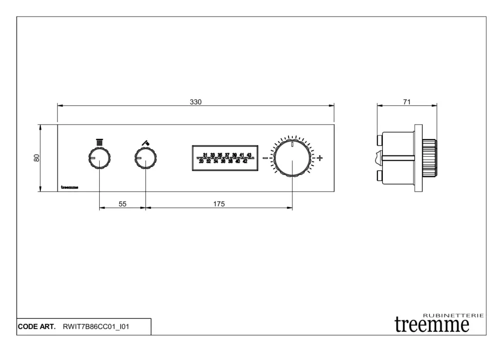 Treemme W-70s Смеситель для душа термостатический встраиваемый, 2 потреб., внеш. часть, цвет: chrome RWIT7B86CC01