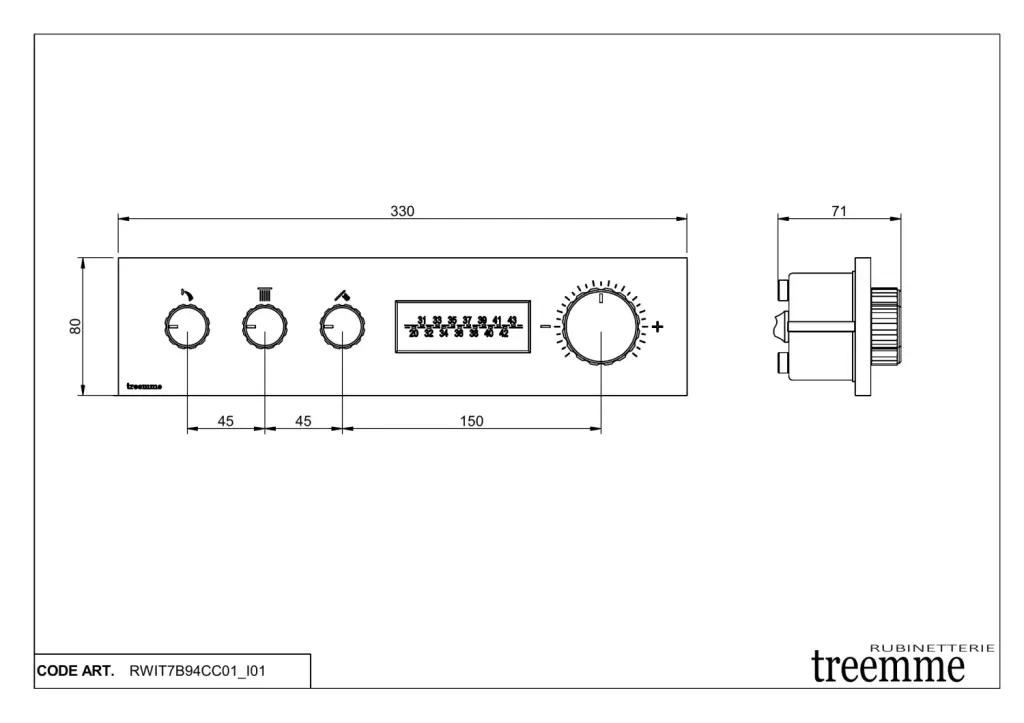 Treemme W-70s Смеситель для душа термостатический встраиваемый, 3 потреб., внеш. часть, цвет: chrome RWIT7B94CC01