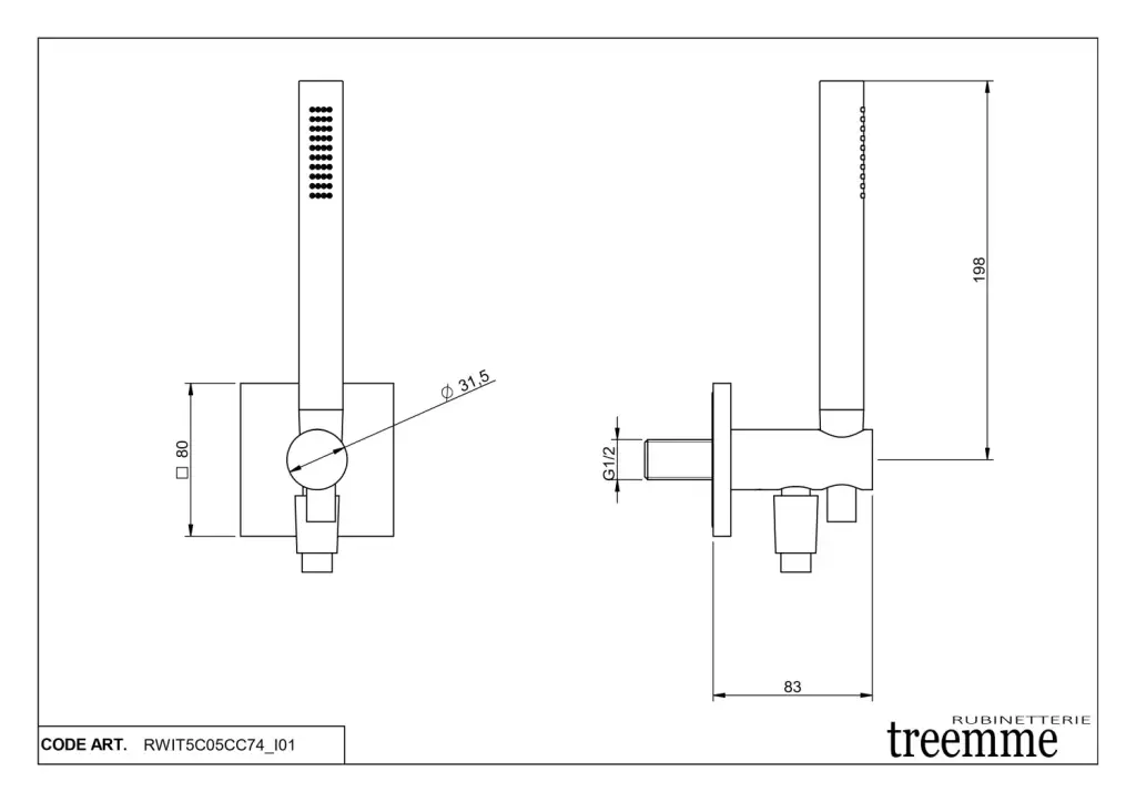Treemme W-smart Душевой гарнитур: душевая лейка 1 вид струи, держатель, шланг, цвет: chrome RWIT5C05CC74