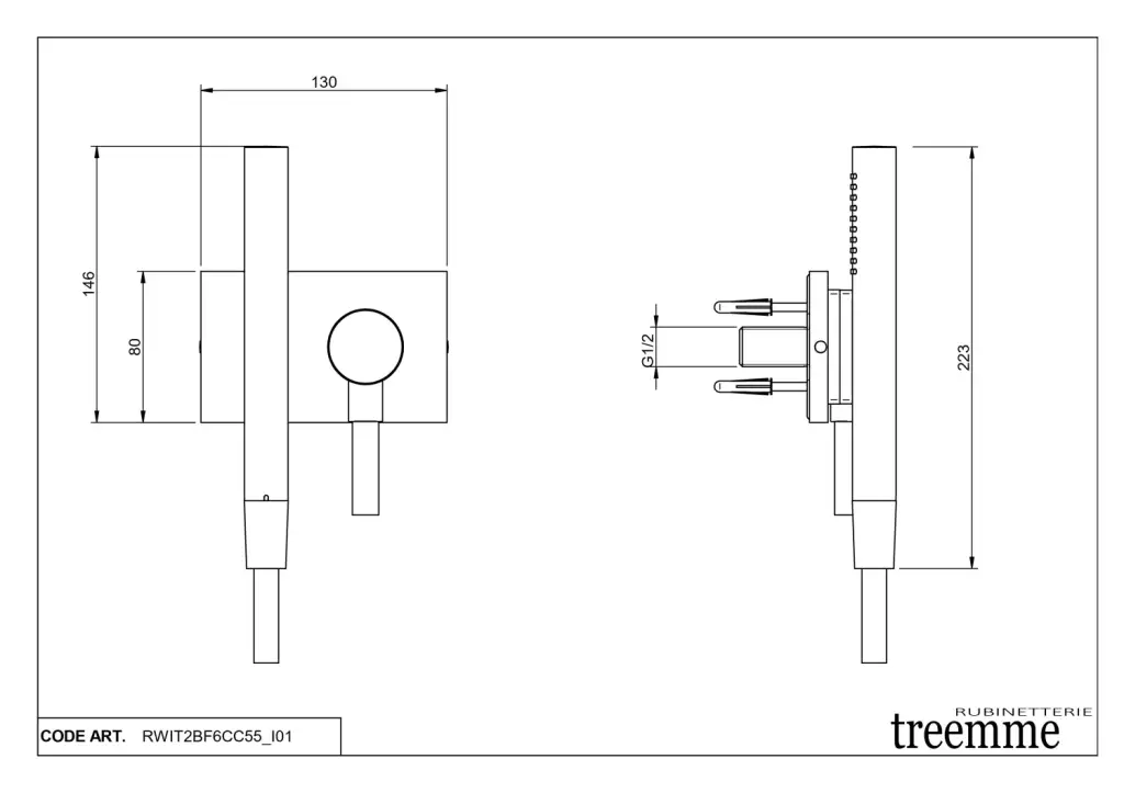 Treemme W-smart Смеситель для душа термостатический встр., 2 потребителя, внешняя часть, цвет:chrome RWIT5C89CC01