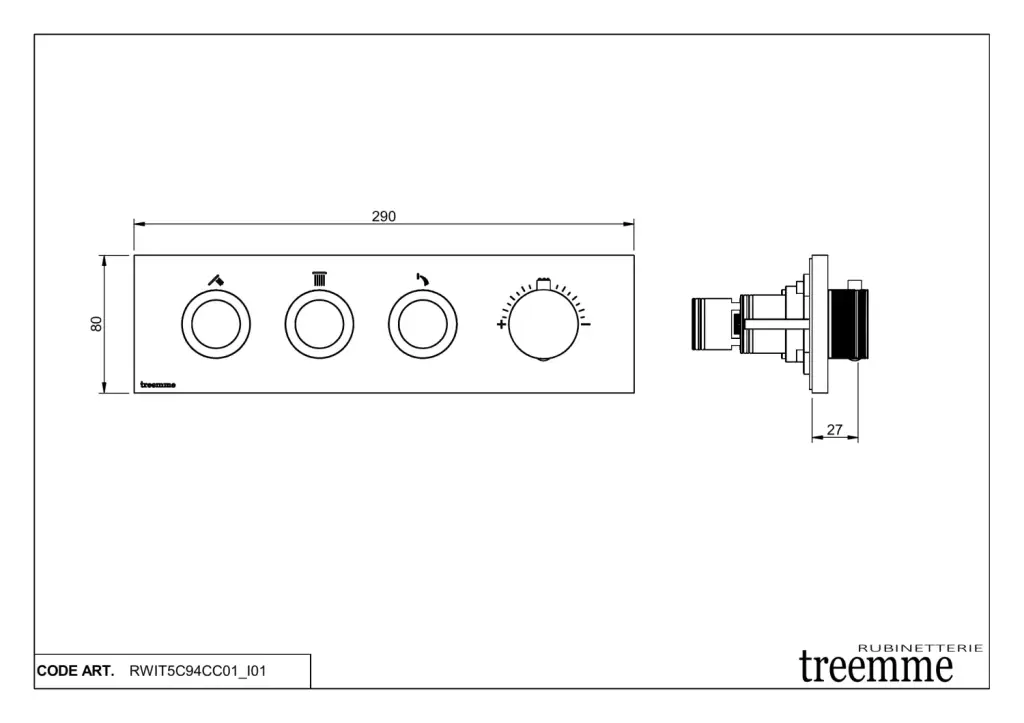 Treemme W-smart Смеситель для душа термостатический встр., 3 потребителя, внешняя часть, цвет:chrome RWIT5C90CC01