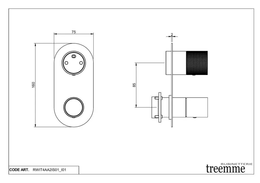 Treemme Watertube Смеситель для душа встраиваемый, 2 потреб., внешняя часть, цвет: нержавеющая сталь RWIT4AA2IS01
