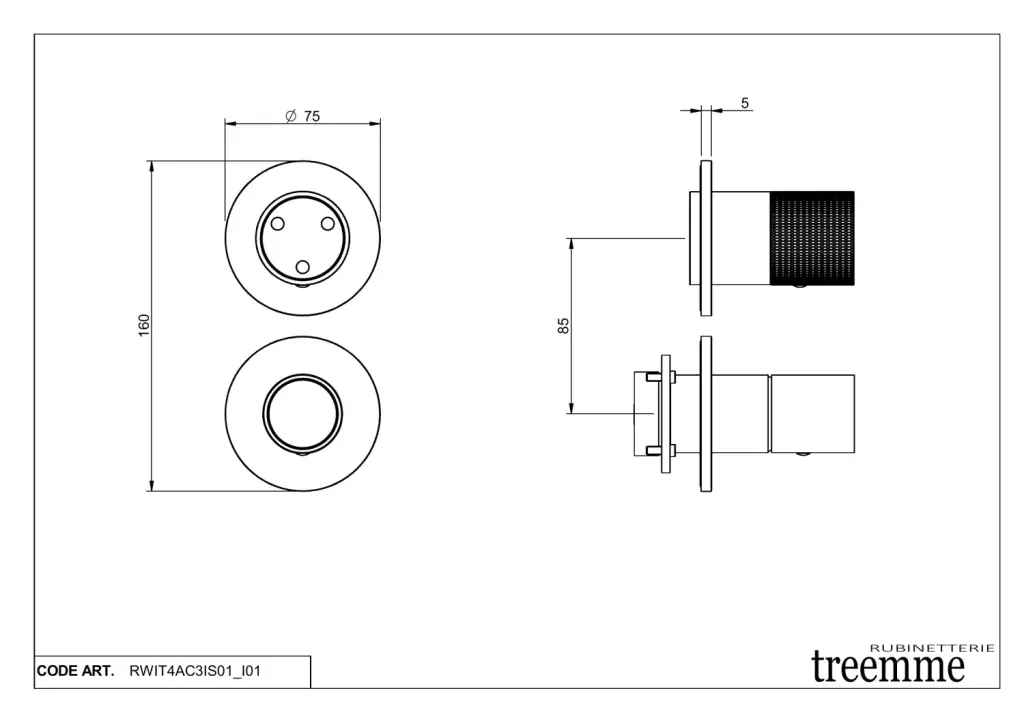 Treemme Watertube Смеситель для душа встраиваемый, 3 потреб., внешняя часть, цвет: нержавеющая сталь RWIT4AC3IS01