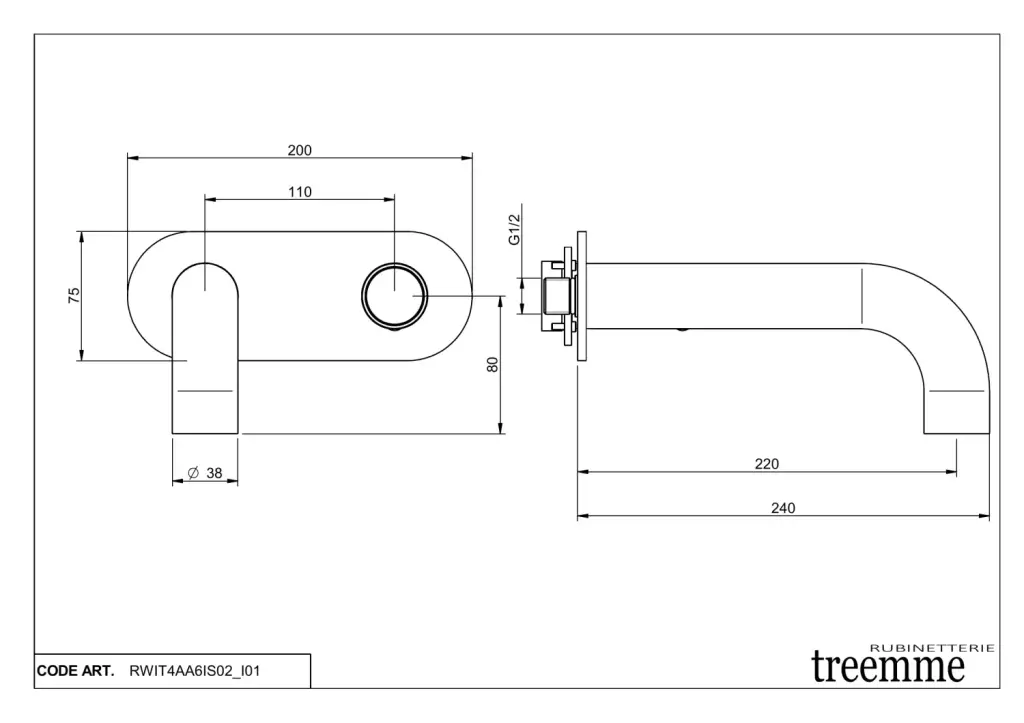 Treemme Watertube Смеситель для раковины встр., внешняя часть, излив 22 см, цвет: нержавеющая сталь RWIT4AC6IS02