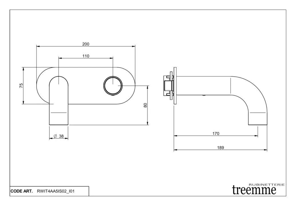 Treemme Watertube Смеситель для раковины встр., внешняя часть, излив 22 см, цвет: нержавеющая сталь RWIT4AC6IS02