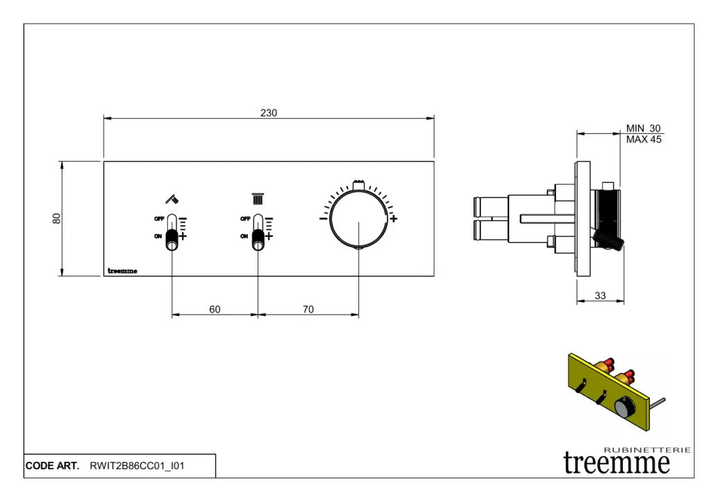 Treemme Watt Смеситель для душа термостат. встр., 2 потреб., внешняя часть, цвет: нержавеющая сталь RWIT2B86IS01
