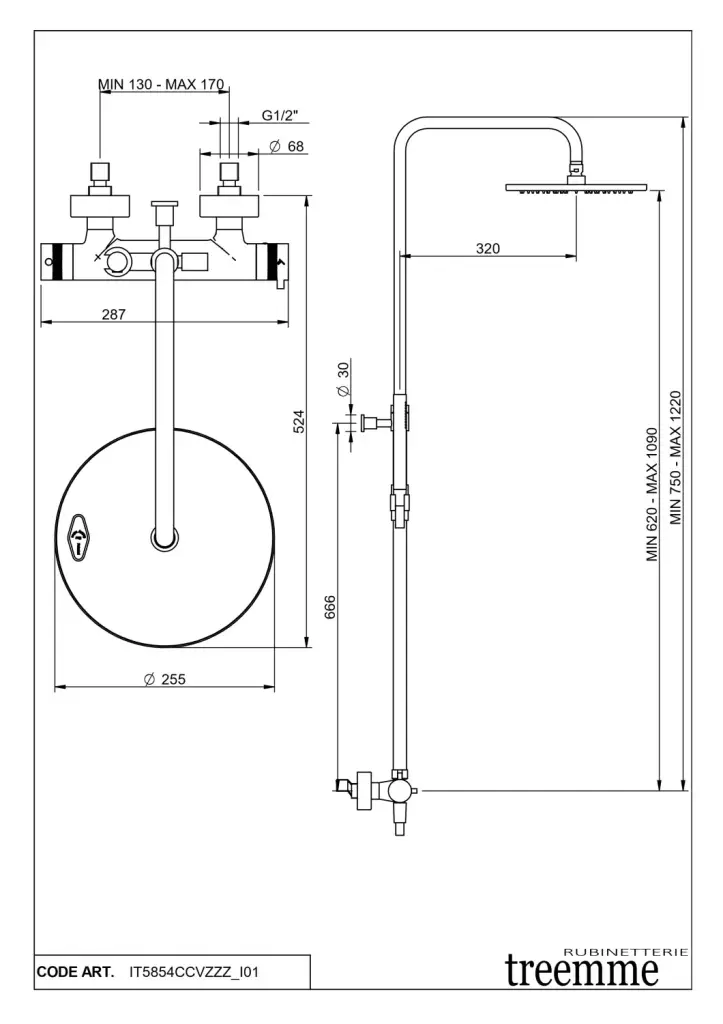 Treemme X-change Душевая стойка: термостат. смес., руч. верх. душ 1 вид струи, шланг, цвет: chrome IT5854CCVZZZ
