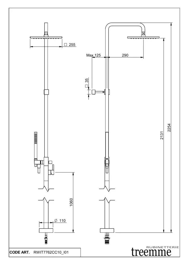 Treemme X-change mono Душевая колонна напольная, руч. душ 1 вид струи, шланг, верх. душ, цвет:chrome RWIT7762CC10