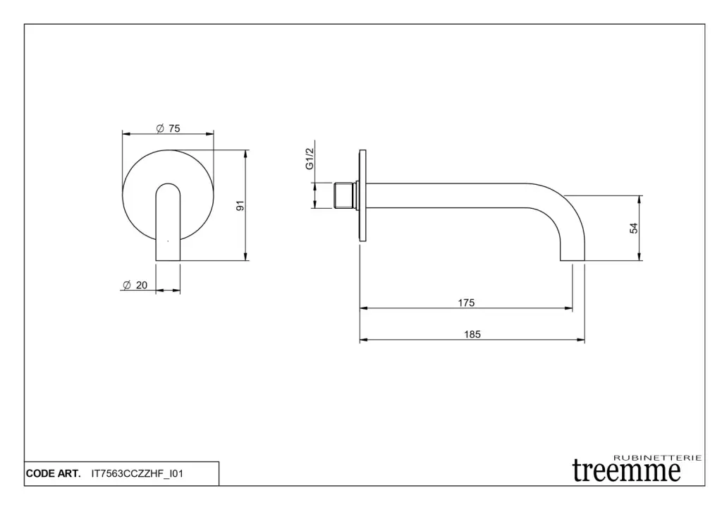 Treemme X-change mono Излив настенный для ванны 18,5 см, цвет: chrome IT7563CCZZHF