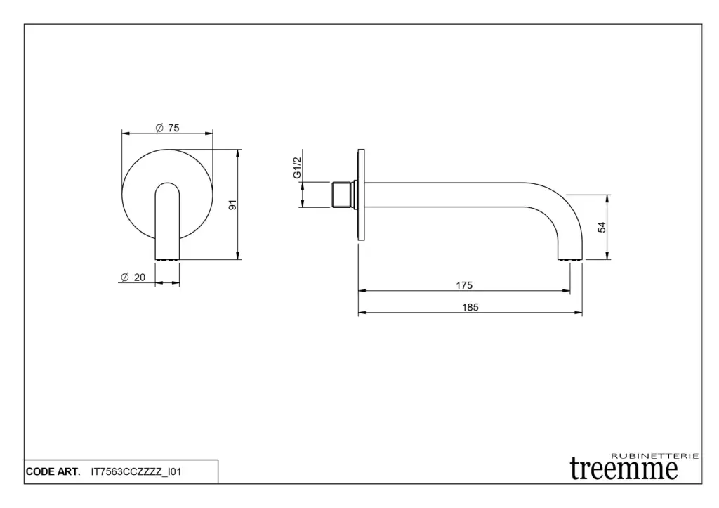 Treemme X-change mono Излив настенный для ванны 18,5 см, цвет: chrome IT7563CCZZZZ