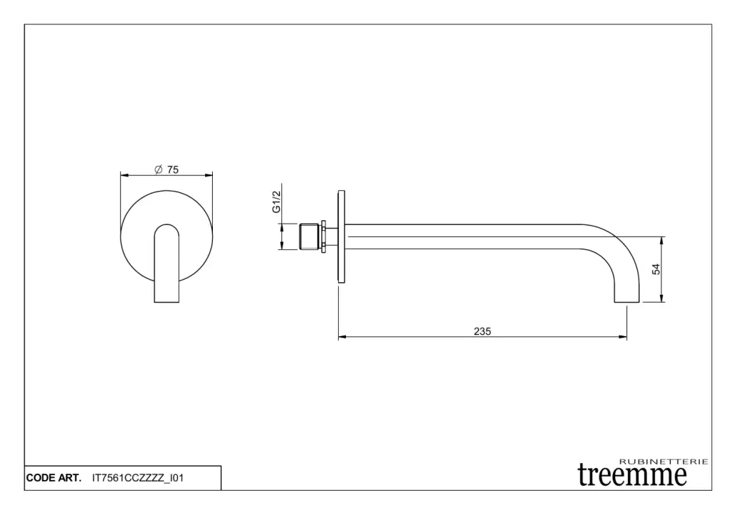 Treemme X-change mono Излив настенный для ванны 23,5 см, цвет: chrome IT7561CCZZZZ