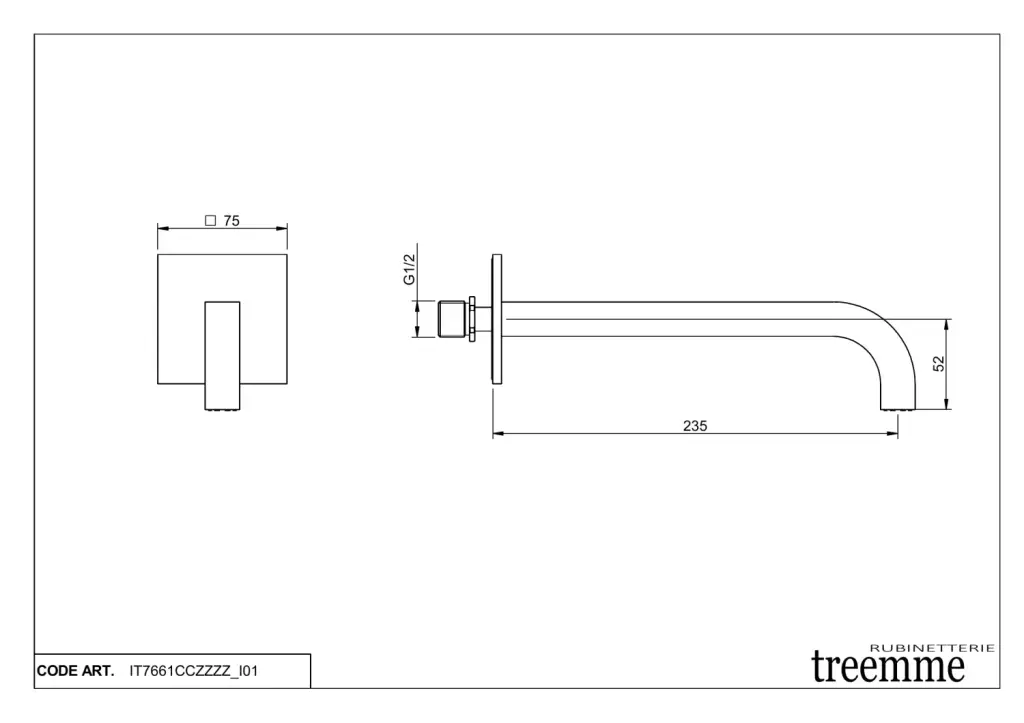 Treemme X-change mono Излив настенный для ванны 23,5 см, цвет: chrome IT7661CCZZZZ