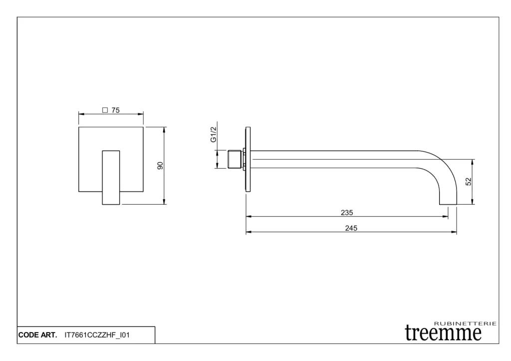 Treemme X-change mono Излив настенный для ванны 24,5 см, цвет: chrome IT7661CCZZHF