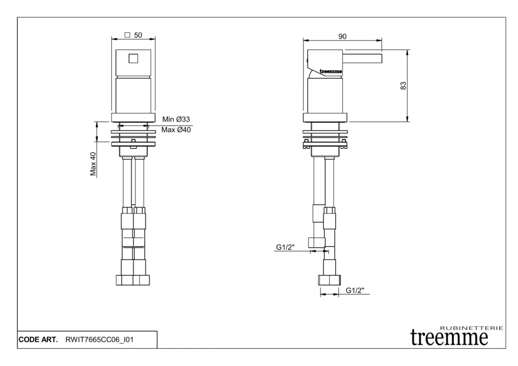 Treemme X-change mono Ручка управления изливом на столешницу, цвет: chrome RWIT7665CC06