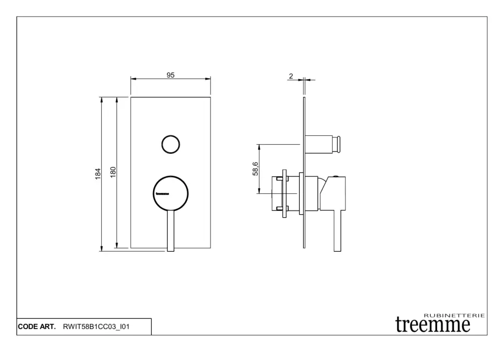 Treemme X-change mono Смеситель для душа встраиваемый, 1 потребитель, внешняя часть, цвет: chrome RWIT58B1CC03