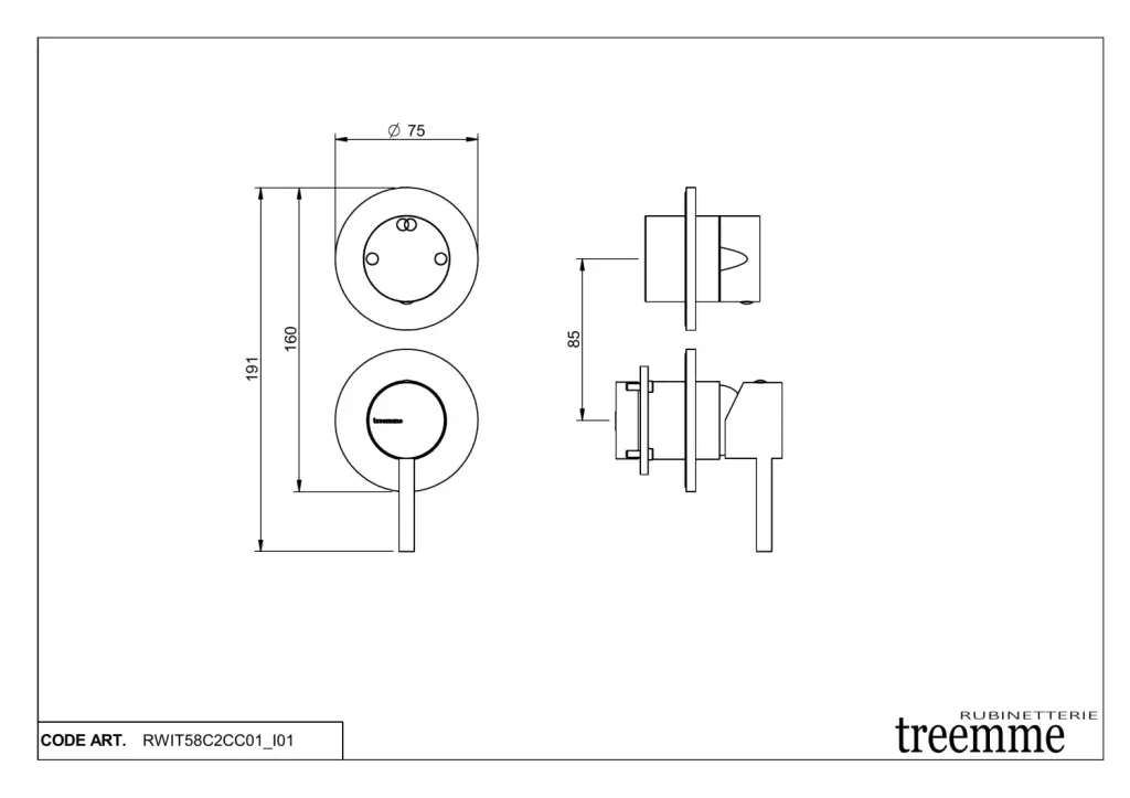 Treemme X-change mono Смеситель для душа встраиваемый, 2 потребителя, внешняя часть, цвет: chrome RWIT58C2CC01