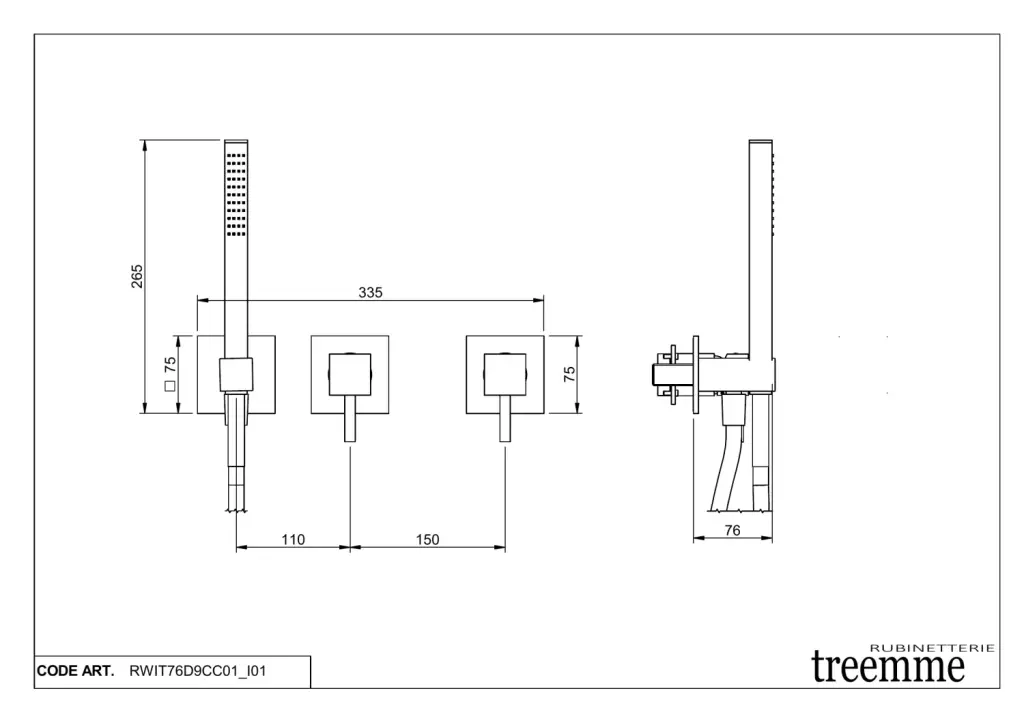 Treemme X-change mono Смеситель для душа встраиваемый, 2 потребителя, внешняя часть, цвет: chrome RWIT76D9CC01