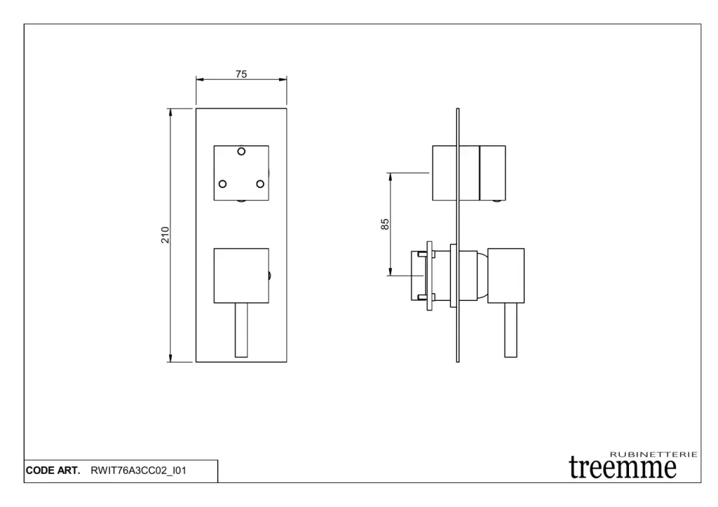 Treemme X-change mono Смеситель для душа встраиваемый, 3 потребителя, внешняя часть, цвет: chrome RWIT76A3CC02
