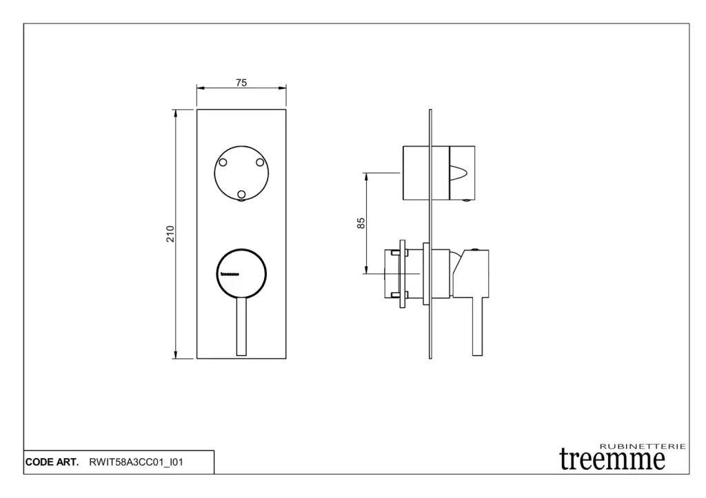 Treemme X-change mono Смеситель для раковины встраиваемый, внешняя часть, цвет: chrome RWIT58C5CC10