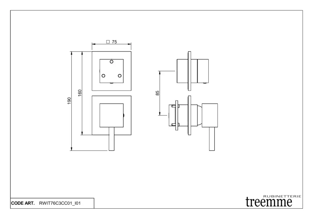 Treemme X-change mono Смеситель для душа встраиваемый, 3 потребителя, внешняя часть, цвет: chrome RWIT76C3CC01
