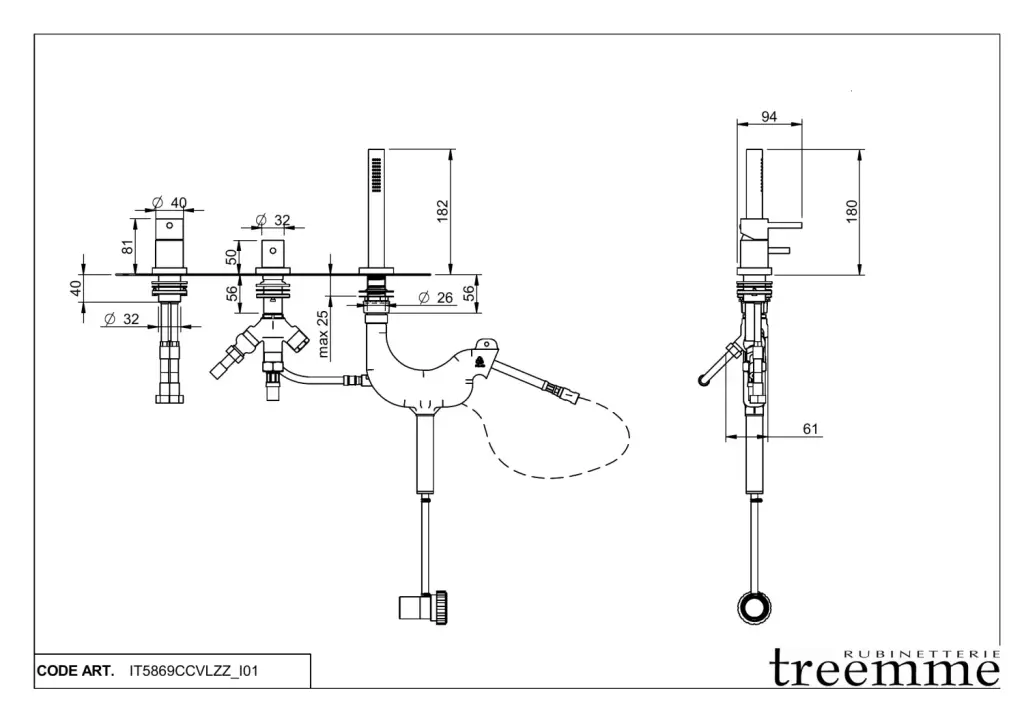 Treemme X-change mono Смеситель на борт ванны на 4 отв., с ручным душем, внешняя часть, цвет: chrome IT5868CCVLZZ